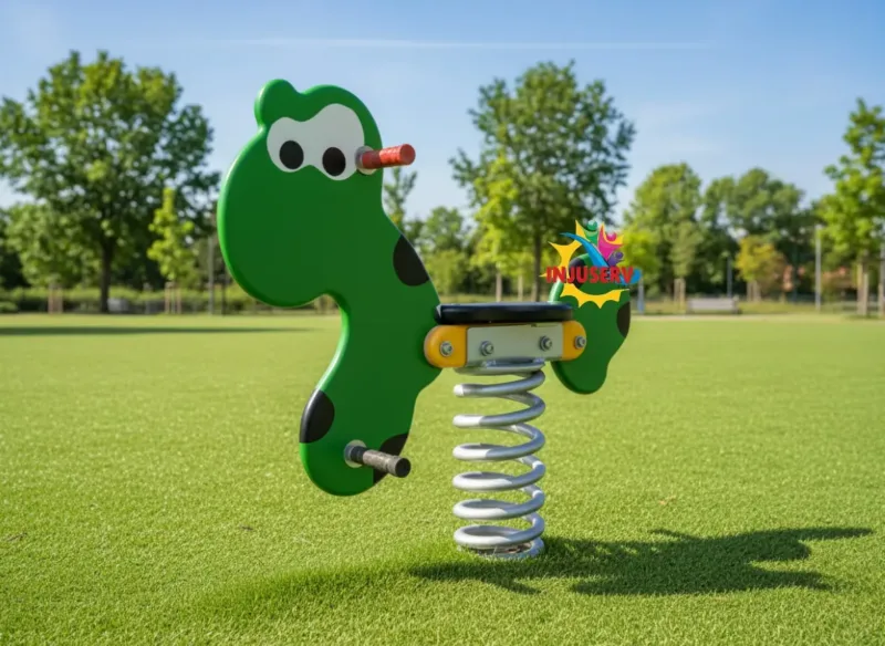 Este balancín individual transporta a los niños a una aventura prehistórica, combinando un diseño temático de alta aceptación con una ingeniería de seguridad superior. Su sistema de oscilación mediante resorte de alto rendimiento es ideal para fortalecer el equilibrio y la motricidad gruesa, proporcionando un juego dinámico y resistente en parques, nidos y centros recreativos.