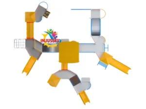 Sistema de Torres Interconectadas: Múltiples estaciones elevadas con techos protectores que crean un recorrido aéreo dinámico y emocionante.