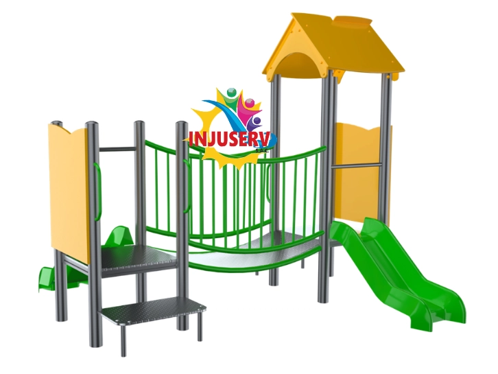 Este modelo ha sido proyectado para ofrecer un entorno de juego equilibrado y seguro, facilitando la interacción entre los más pequeños gracias a su diseño de doble plataforma. Es una estructura ideal para centros educativos iniciales que buscan fomentar la confianza y la coordinación motriz en un espacio controlado y altamente resistente.
