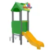 Sistema de Torres Dual: Incluye una torre con techo piramidal para protección solar y una torre abierta, creando un espacio ventilado y dinámico para niños de 3 a 5 años.