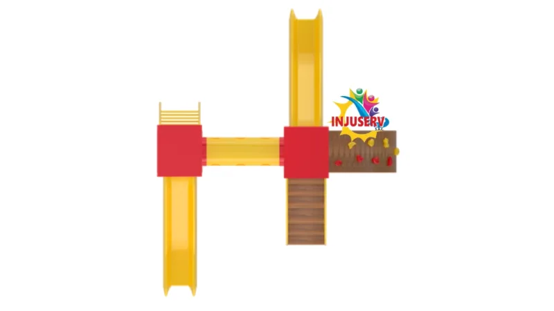 Este modelo ha sido diseñado como un circuito de aventura completo que optimiza el espacio mediante una estructura de doble torre interconectada. Su configuración permite un flujo dinámico de usuarios, combinando un puente de equilibrio con múltiples puntos de acceso y una zona de deslizamiento de alto rendimiento, ideal para parques públicos y áreas escolares.