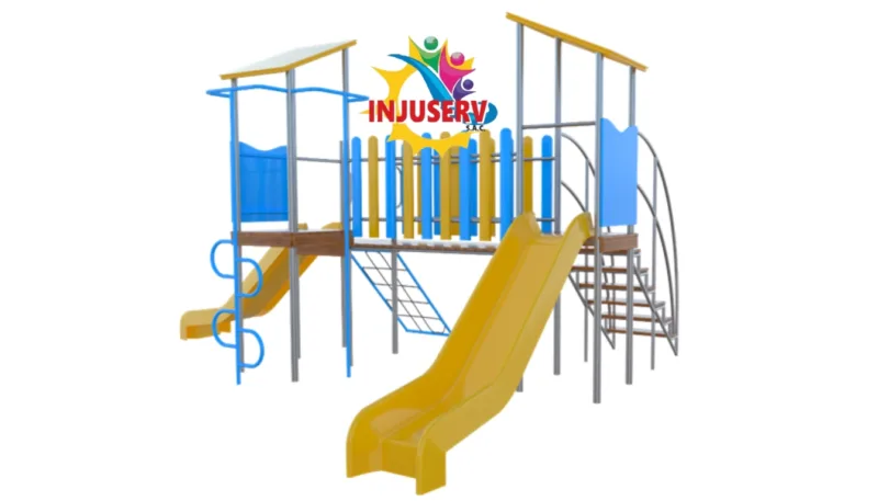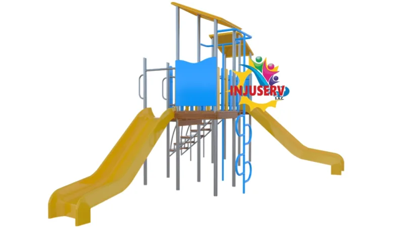 Este modelo ha sido diseñado como un circuito recreativo integral que conecta dos torres elevadas mediante un puente de seguridad, permitiendo un flujo continuo de juego. Su estructura destaca por combinar diferentes niveles de reto físico, desde el ascenso por escalera hasta el deslizamiento rápido, todo fabricado bajo estrictos estándares de durabilidad en acero nacional galvanizado.
